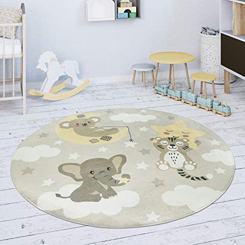 Paco Home Tappeto Bambini Cameretta da Gioco Bebè Stella Nuvola Luna Beige Bianco, Dimensione:Ø 120 cm Tondo