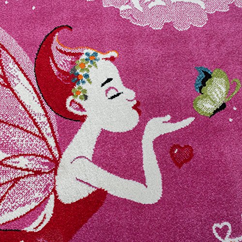Paco Home Tappeto per Bambini Pink Principessa Fata Tappeti per Bambine Fucsia Pink, Dimensione:120x170 cm