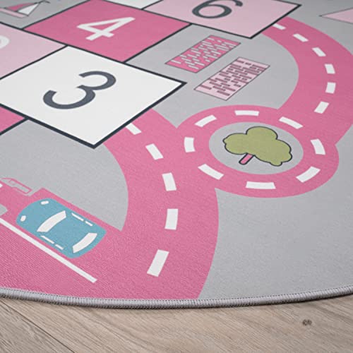 Paco Home Tappeto Bambini Rotondo Tappeto Bambini Cameretta Tappeto da Gioco Tappeto Stradale Moderno Bambini Bambine, Dimensione:Ø 200 cm Tondo, Colore:Pink