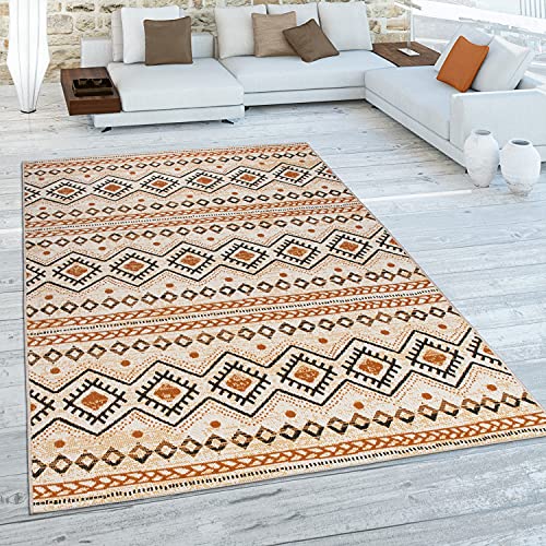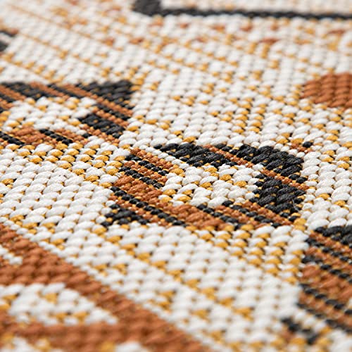 Paco Home Tappeto Esterni Robusto Balcone Cucina Boho Vintage Moderno Crema Arancio Grigio, Dimensione:80x150 cm