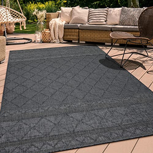 Paco Home Tappeto per Esterno da Balcone Terrazza Tappeto Cucina Moderno Boho Etnico, Dimensione:Ø 160 cm Tondo, Colore:Antracite 2