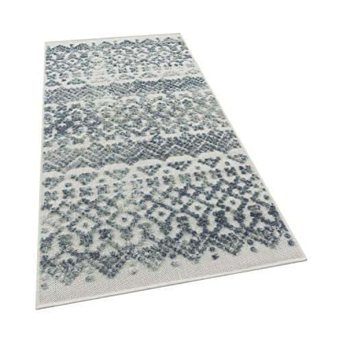 Paco Home Tappeto per Esterno Terrazzo Balcone Tappeto Cucina Motivo Scandinavo 3D Motivo Geometrico Turchese Crema, Dimensione:160x230 cm