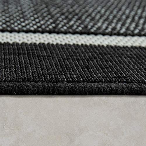 Paco Home Tappeto per Interni ed Esterni a Pelo Corto con bordature a Effetto 3D e Look Naturale Tinta Unita Nero, Dimensione:160x230 cm