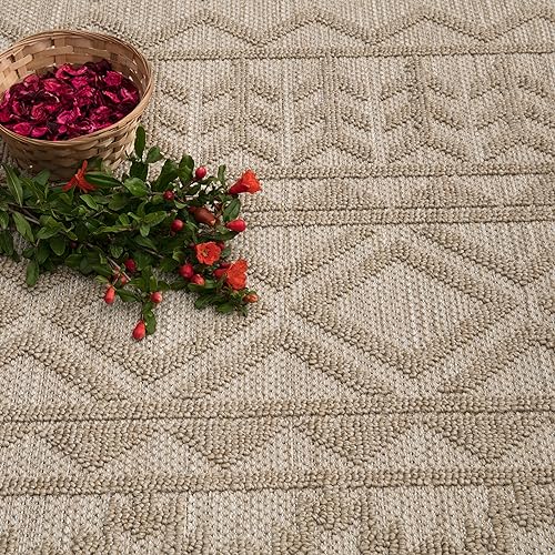 Paco Home Tappeto Salotto Moderno Soggiorno Pelo Corto Motivo Boho Motivo Scandinavo con Frange, Dimensione:120x160 cm, Colore:Beige