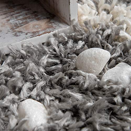 Paco Home Tappeto Shaggy a Pelo Lungo per Soggiorno, con Design scandinavo e Motivo di Rombi in Grigio, Dimensione:Ø 160 cm Tondo