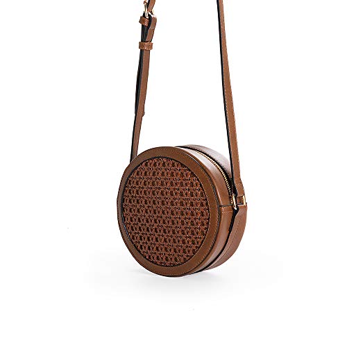 PACO MARTINEZ | Borsa a tracolla rotonda intrecciata marrone | 17x17x6,5 | Piccolo
