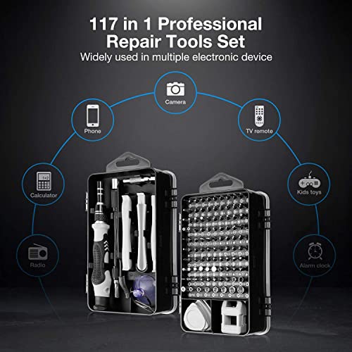Set cacciaviti di precisione 117 in 1 kit riparazione per occhiali, smartphone, iPad, tablet, cellulare, PC, laptop, elettronica ecc.Tutti gli strumenti necessari per una vasta gamma di lavori, soddisfa le vostre diverse esigenze.