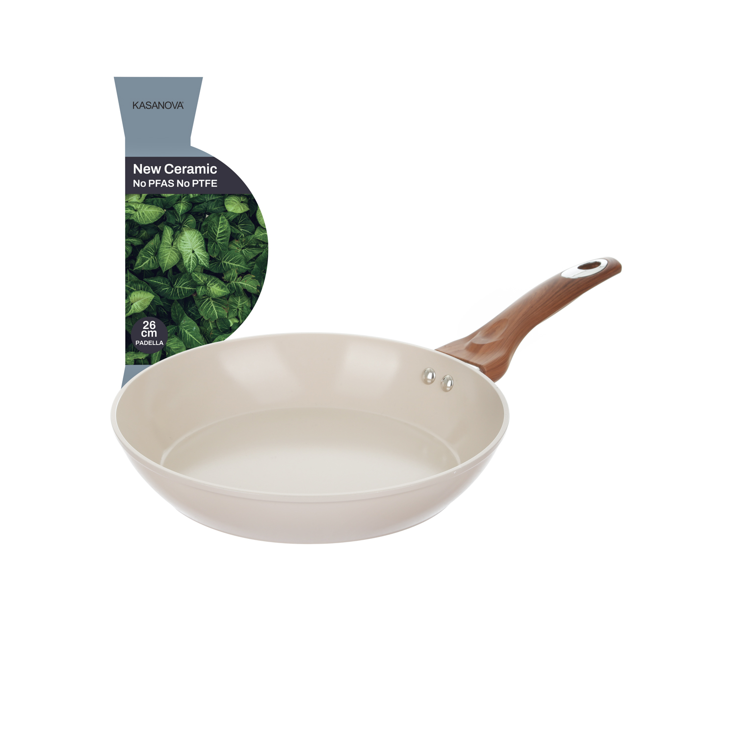 New Ceramic è la nuova linea di pentole antiaderenti KASANOVA dal rivestimento ceramico per una cucina sicura e sana: 0% PTFE, 0% PFAS, 0% grassi e 100% croccantezza naturale! Rivestimento antiaderente: in ceramica a base d'acqua, perfetto per una cucina naturale e senza bisogno di aggiungere grassi in cottura;