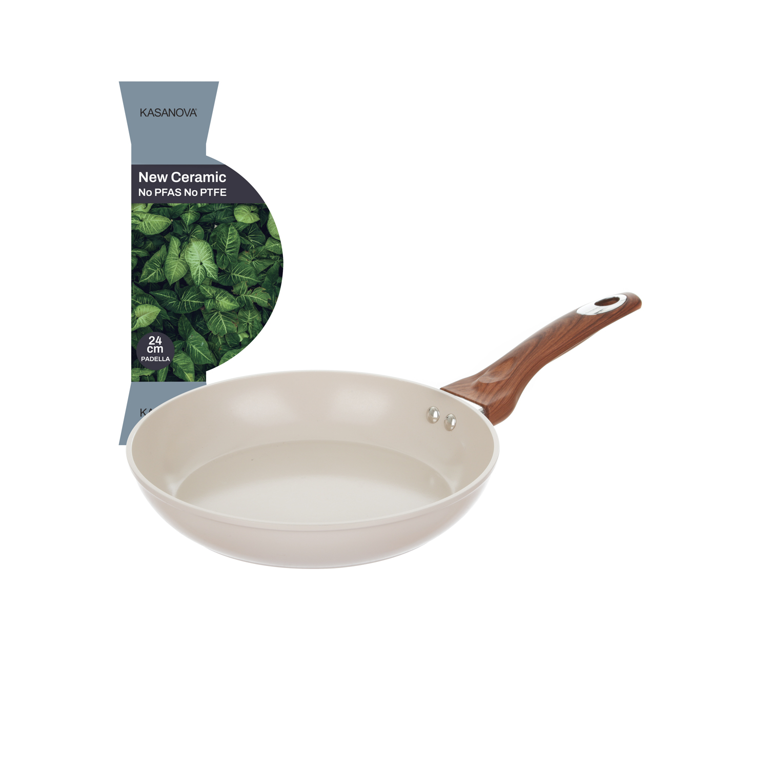 New Ceramic è la nuova linea di pentole antiaderenti KASANOVA dal rivestimento ceramico per una cucina sicura e sana: 0% PTFE, 0% PFAS, 0% grassi e 100% croccantezza naturale! Rivestimento antiaderente: in ceramica a base d'acqua, perfetto per una cucina naturale e senza bisogno di aggiungere grassi in cottura;