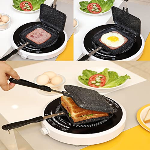 Padella a doppia faccia, padella per panini Padella a doppia faccia per panini Padella antiaderente Padella a due lati con manici Piastra antiaderente per snack per colazione Cuochi casalinghi Toast