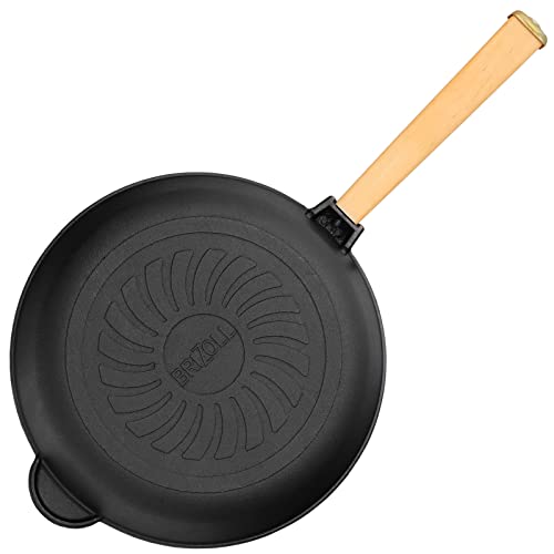 Padella in Ghisa 24 cm altezza 62 mm con manico in legno - Padella multifunzione a induzione - Padella per Friggere adatta per barbecue a gas, forno, focolare e tutti i piani cottura, con induzione