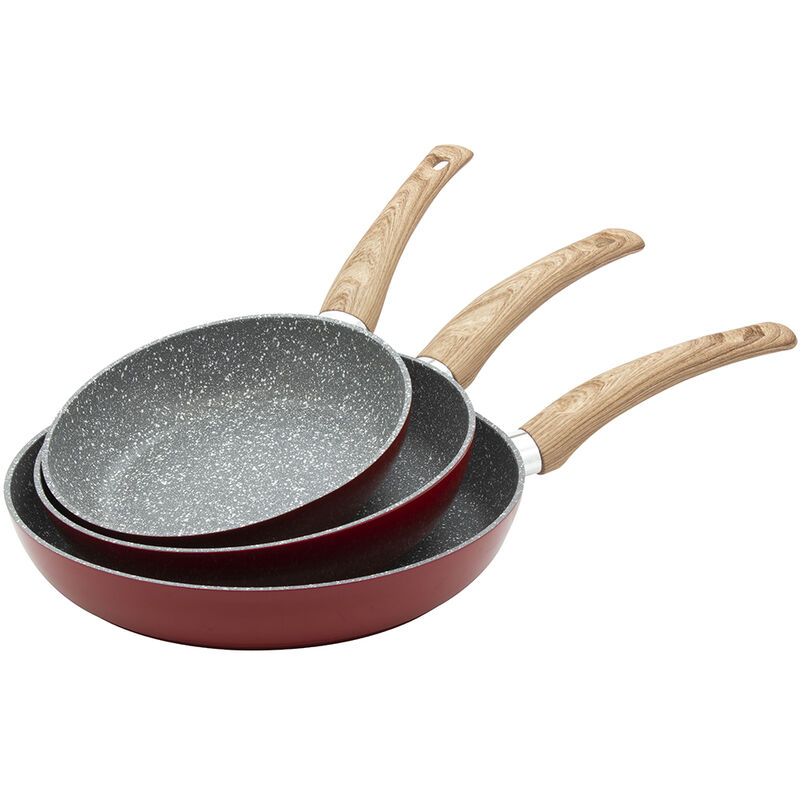 Cucinare non è mai stato così facile con il nuovissimo tris di padelle di BAKAJI!Queste fantastiche padelle sono realizzate con un resistentissimo corpo in alluminio a 6 strati ad alto spessore per un alta resistenza a graffi e abrasioni, un eccellente diffusione del calore e una migliore cottura dei cibi.Il particolare rivestimento altamente antiaderente effetto pietra, costituito da una fitta rete di micro particelle minerali naturali garantisce che gli alimenti non si attacchino alla padella ciò permette un minore utilizzo di olio e grassi per una cottura dei cibi più sana e nutriente.Fornita di maniglia Soft touch effetto legno, ergonomico, atermico, resistenti alle alte temperature con Parafiamma in profilato di alluminio e vite in acciaio per garantire stabilita' ed evitare ruggine. SPECIFICHE PRODOTTO:Marca: BAKAJITris Padelle: Diametro 20 cm - 24 cm - 28 cmMateriale: alluminio a 6 strati ad alto spessore per un eccellente diffusione del caloreTipo di rivestimento: Antiaderente