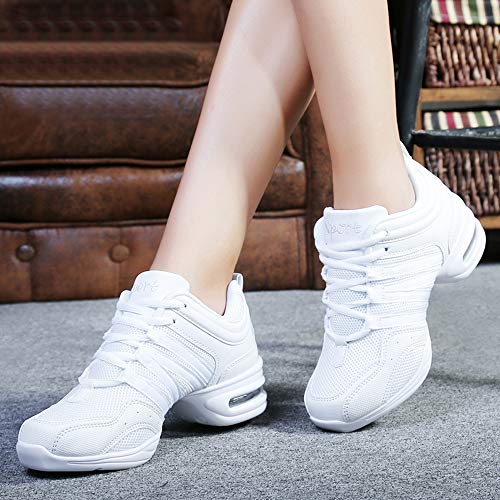 Padgene Scarpe Jazz Donna Scarpe da Ginnastica Lacci Cuscino Traspirante Signore Suole Divise Scarpe da Danza a Camminare Sportive, S Bianco Classico, 39 EU