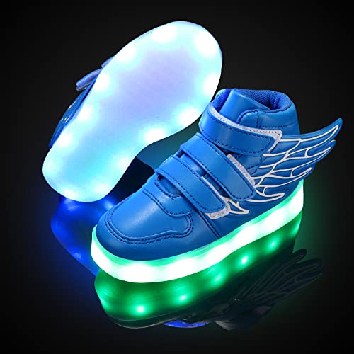 Padgene Scarpe Stringate con Luci LED in Materiale Sintetico Bambino Scarpe da Ginnastica Casual Calzature per Ragazzi e Ragazze Unisex, Blu, 30EU