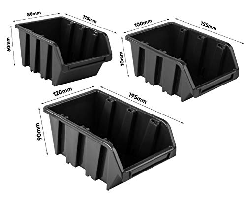 PAFEN Sistema di stoccaggio da parete - 1158 x 780 mm - Scatole impilabili - Scaffalatura da parete - Set di 3 tipi di scatole (nero)