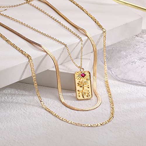 Paffartt Fiore Di Nascita Collana a Strati Placcato Oro 14K Catena Staccabile Forma Quadrata Moneta Lotus In Luglio Delicata Collana Con Ciondolo Regalo Di Compleanno Per Donne