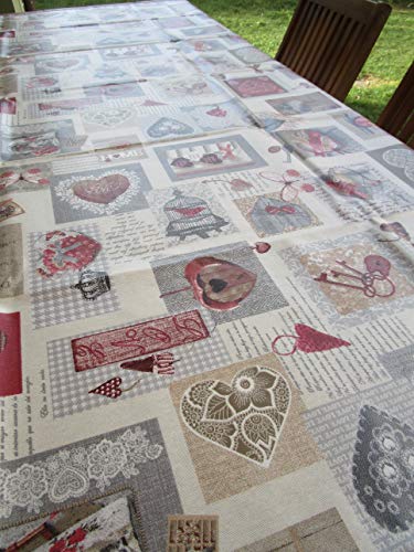 PAGO POCO Tovaglia Rotonda in Cotone Plastificato Fantasia CUORI SHABBY Colore Rosso 100% IMPERMEABILE MADE IN ITALY Novita' 2021!!! (Rotonda x160)