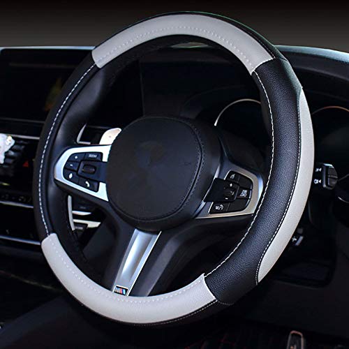 Pahajim Coprivolante Auto Universale in PU Pelle Microfibra Copri Volante 38CM, Copertura Volante Auto Antiscivolo Traspirante, Morbido e Confortevole (Grigio Nero)