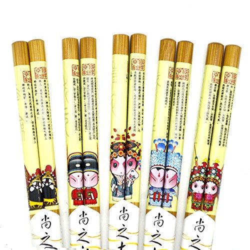 5 paia di bacchette asiatici colorate bacchette Opera di Pechino cinesi Set di scatola di bacchette stile cinese (Peking Opera)
