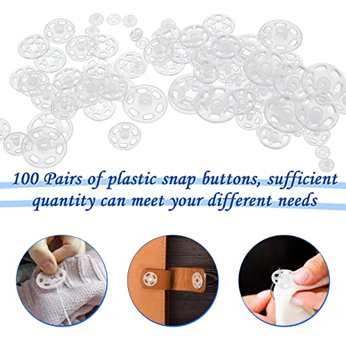 100 paia di bottoni in plastica invisibili bottoni fai da te, bottoni trasparenti di chiusura in plastica, bottoni a pressione in plastica per cucire vestiti, borsa fai da te 7 mm, 12 mm, 15 mm, 21 mm