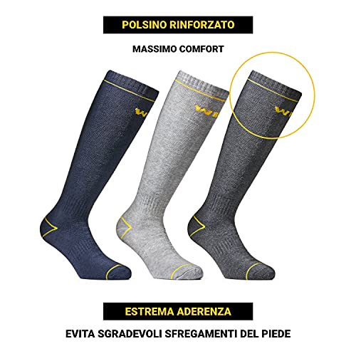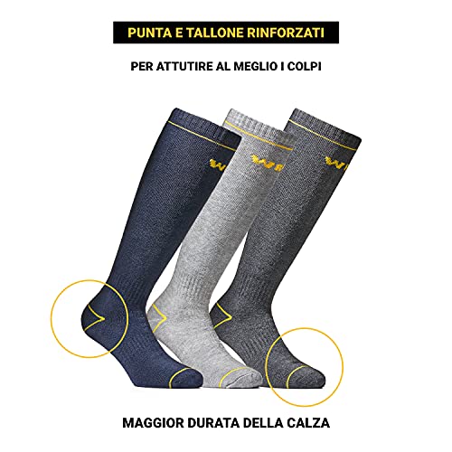 WRK 6 Paia Calza Lunga Termica Anti-Infortunistica - Termo Isolante - Riforzo Punta-Tallone - Cuciture comfort - Stringipiede Centrale - 39 Assortito