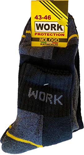 Calzini da lavoro, da donna e da uomo, molto comodi, in spugna cotone, altezza caviglia, sono rinforzati nella punta, nella suola e nel tallone, per avere una durata più lunga, visto che le scarpe con suola in acciaio danno una maggiore abrasione al calzino, pertanto questo rinforzo ne aumenta la "vita" del calzino appunto.