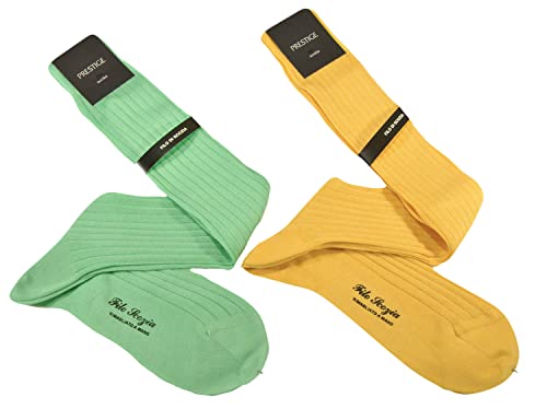2 PAIA - Calze uomo lunghe a coste in pregiatissimo cotone 100% filo scozia MODA (MENTA-GIALLO, 42-44)