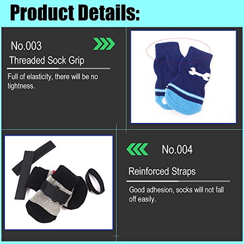 4 paia di calzini antiscivolo per cani e gatti con rinforzo in gomma e 8 piccole cinghie, protezione per animali domestici per pavimenti in legno duro (S, Style3)