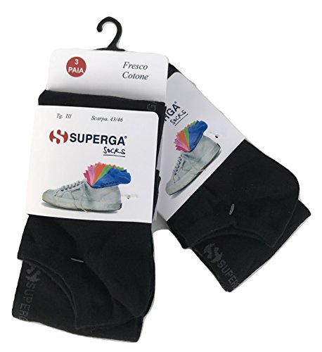 6 paia calzini fantasmini superga invisibili in cotone finissimo uomo donna bambino (39-42, nero)