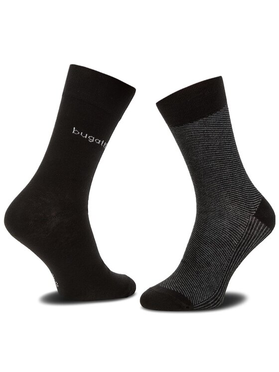 Bugatti Set di 2 paia di calzini lunghi da uomo 6870 Nero
