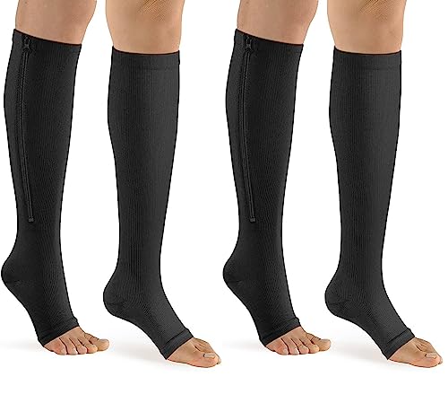 2 paia - Calzini medici a compressione con cerniera 15-20 mmHg Supporto gamba con cerniera Ginocchio aperto unisex