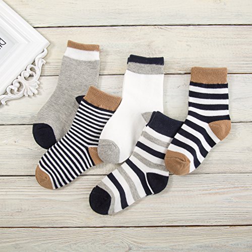 Set di 5 paia di calzini morbidi per bambini, in cotone, a righe Blu scuro 4-6 anni