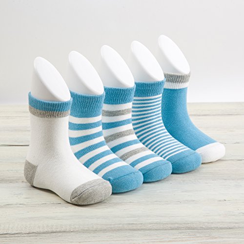Set di 5 paia di calzini morbidi per bambini, in cotone, a righe Celeste. 1-3 anni