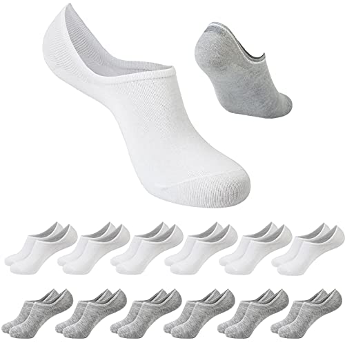 12 Paia Calzini Uomo Donna Corti Fantasmini Cotone Calze Uomo Donna Corte Antiscivolo Sportivi 39-42 F-Bianco grigio