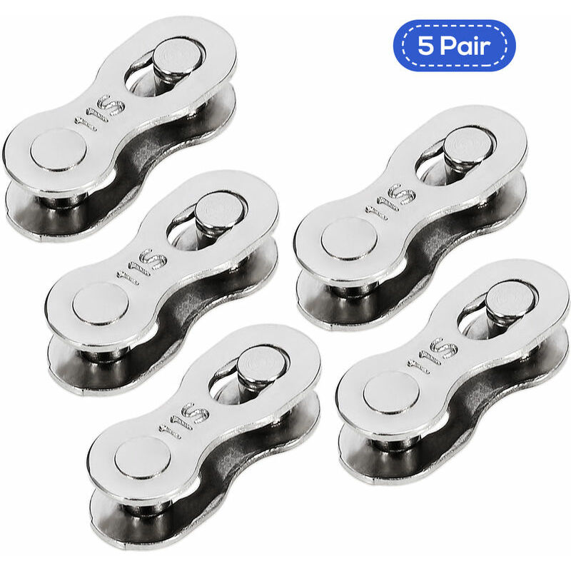 Fino a 950kgF ad alta resistenza alla bicicletta riutilizzabile trazione della catena e connettore, adatto per mountain bike e bici da strada.Caratteristica: acciaio 50# costruito, forte resistenza alla trazione fino a 950 kgF.Collegamento a maglie usa e getta. Riutilizzabile per MTB e bici da strada. Specifiche: Quantità: 1 paio / 5 paia (opzionale) Velocità: 6-8S / 9S / 10S / 11S (argento) / 11S (oro) (opzionale) Materiale: acciaio 50# Peso della coppia: 2,5 g Elenco dei pacchetti: 1 * paio di maglie a catena