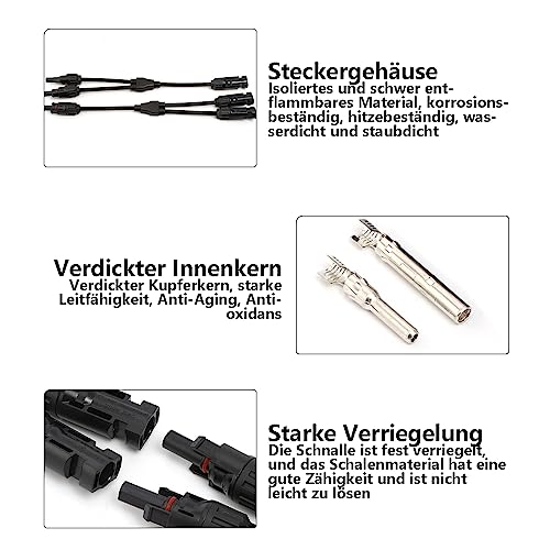 【Facile da installare】: spina solare y, facile da usare. La spina e la presa hanno un sistema stabile e autobloccante per un facile collegamento e scollegamento, il connettore parallelo di derivazione y è facile da montare e smontare.