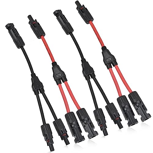 2 paia di cavi solari a Y, cavo solare MMF+FFM per collegamento fotovoltaico parallelo, connettore solare connettore solare connettore Y ramo adattatore parallelo IP67,2 rosso + 2 nero