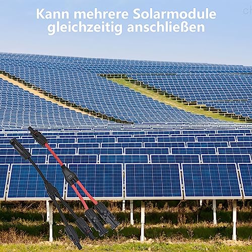 【Alta compatibilità】: il cavo solare a Y è compatibile con tutti i connettori standard. Dimensioni connettore: 2. 5/4/6 mm. Corrente nominale: 30 A, tensione nominale: DC 1000 V, intervallo di temperatura di funzionamento: -40 °C ~ +90 °C. mmf e ffm connector è resistente al fuoco e ha una bassa resistenza di contatto.
