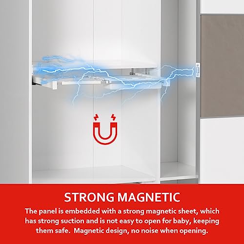 Forte magnetico: il pannello è incorporato con un forte foglio magnetico che ha una forte forza di aspirazione e non è facile da aprire per il bambino per tenerlo al sicuro. Design magnetico, nessun rumore quando si apre
