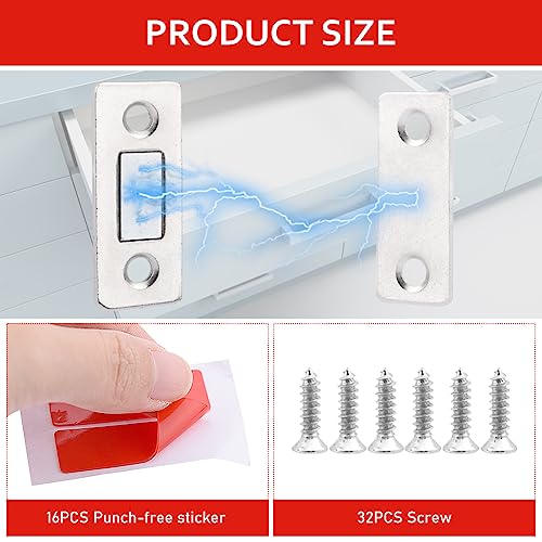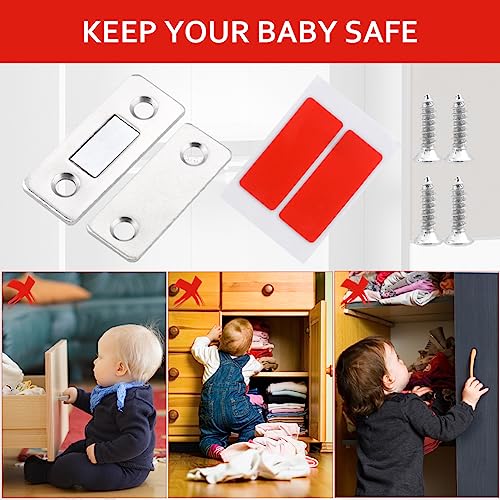 Facile da installare: riceverete 8 paia di chiusure magnetiche, 16 adesivi senza punzonatura e 32 viti. Adesivo è forte e non fa male mobili. La vite è forata per installare, rafforzare e stabilizzare e non è facile cadere