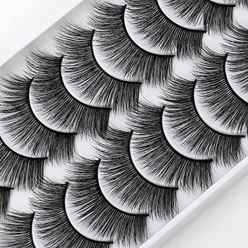 Kit 10 paia di ciglia finte, ciglia finte 3D Ciglia naturali lunghe e morbide, ciglia finte morbide riutilizzabili fatte a mano Estensione ciglia trucco nero di lusso # Y601
