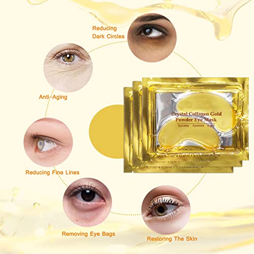 25 Paia di Cuscinetti In Gel Sotto Gli Occhi, Oro 24k Sotto Gli Occhi Patch Maschera Per Gonfiore e Borse, Riducendo le Occhiaie, le Rughe, Oro, Sotto Gli Occhi Idrata e Anti-Invecchiamento