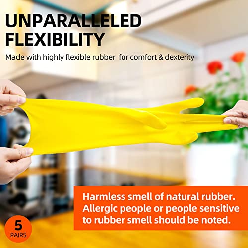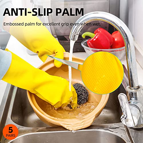 Vgo... 5 paia Guanti Lavapiatti Anticalore Riutilizzabili per Pulizia Casa Lavaggio, Guanti da Cucina in Gomma, Extra Spesso a Maniche Lunghe(Taglia L)