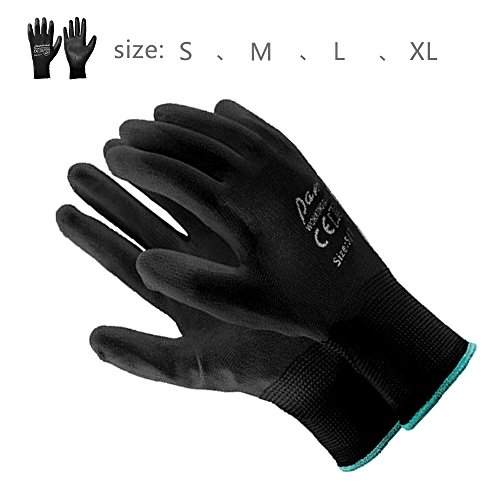 50 paia di guanti da lavoro in nylon PU, neri, guanti per la sicurezza per costruttori o appassionati di giardinaggio