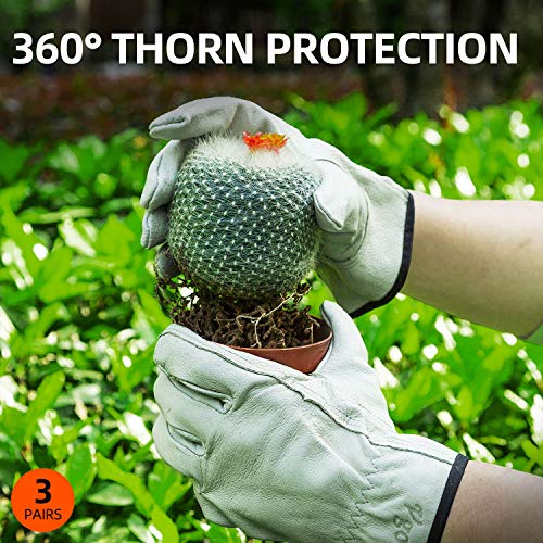 Vgo 3 Paia Guanti da lavoro in pelle di cinghiale da uomo, guanti da guida, guanti in pelle lavabile premium (8/M, Beige, PA9501)