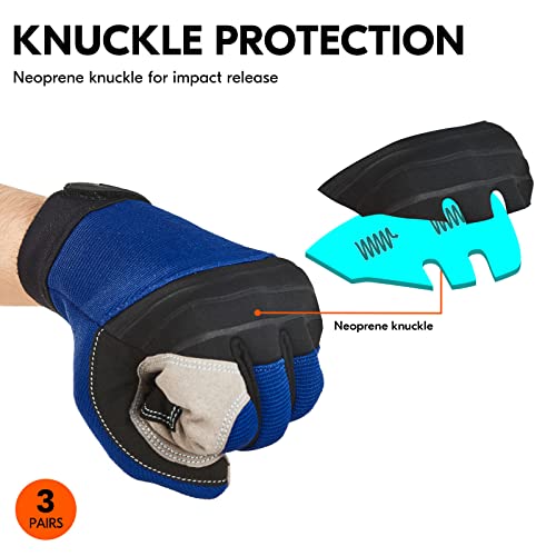 Vgo... 3 paia Guanti Lavoro Uomo, Guanti Meccanico Resistenti in Pelle da Legnameria Edilizia Muratore Magazziniere (M, SL7621)