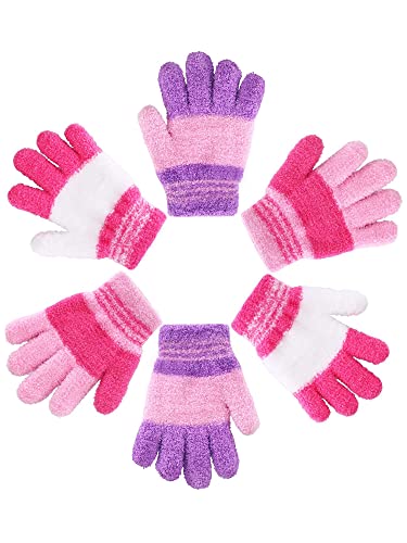 3 Paia Guanti in Maglia Invernali Caldi Guanti Elastici a Dita Intere Ragazzi Bambini (Colore Brillante, 1-3 anni)