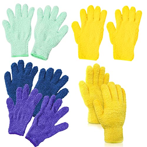 4 Paia Guanti in Microfibra per Pulizia di Polvere Automatica Guanti per Spolverare Riutilizzabili per Casa Camion Automobili, Specchietti Finestre Lampade