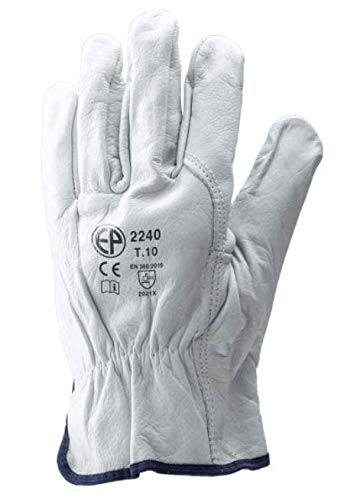 12 paia - tg 10 guanti in pelle fiore bovino bianco per lavoro antinfortunistica