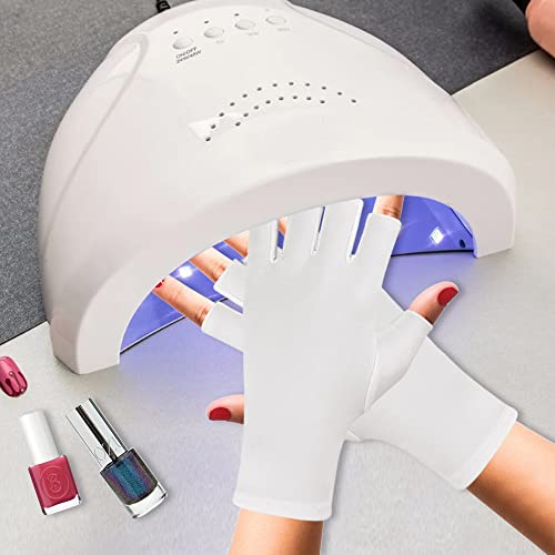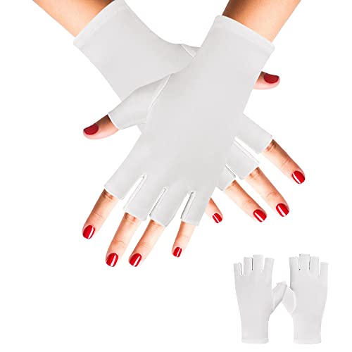 2 paia Guanti di Protezione UV Guanti Senza Dita Elastici Guanti Anti-ultravioletti Guanti di cotone per Manicure Guanti per Lampada Uv Unghie per Nail Art Asciugatura Gel Smalto-bianco